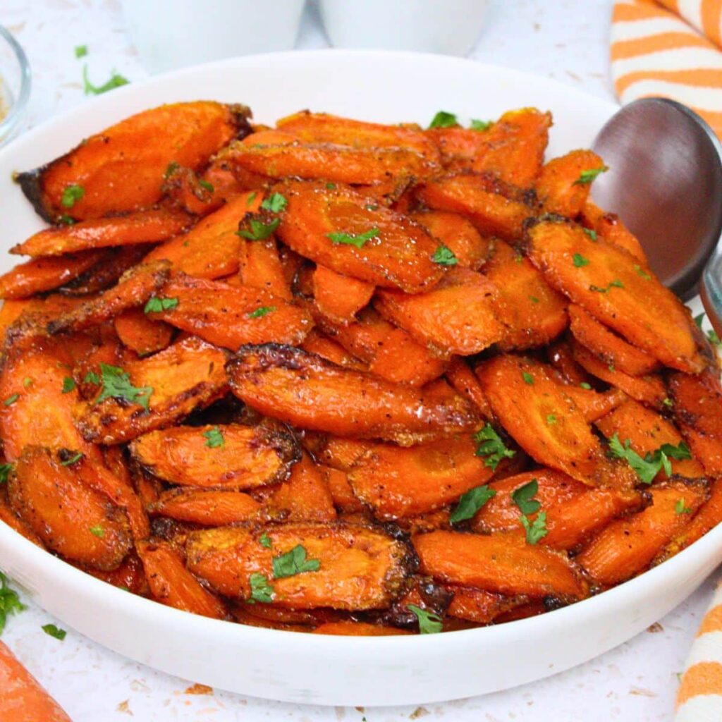 These roasted air fryer sliced carrots with a brown sugar glaze are so simple yet delicious! With just 6 ingredients that you probably have in the pantry and under 10 minutes cooking time, it’s the perfect side dish for even your busiest nights.