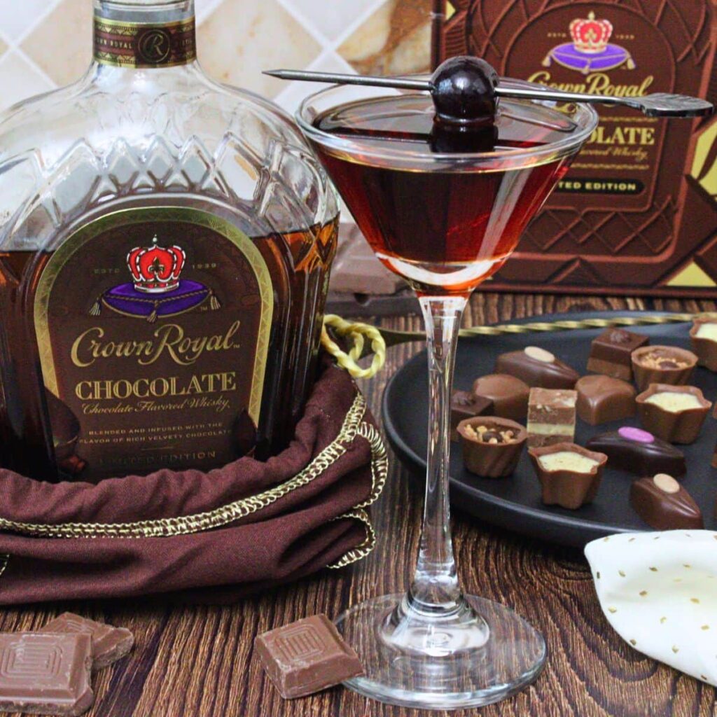 - The Crown Royal chocolate whisky is seasonal, so if you can’t find it feel free to substitute another chocolate whiskey (like Bird Dog or Ballotin), or use regular rye whiskey or bourbon and add ½ ounce chocolate liqueur (like a high-quality creme de cacao or Godiva) for the flavor